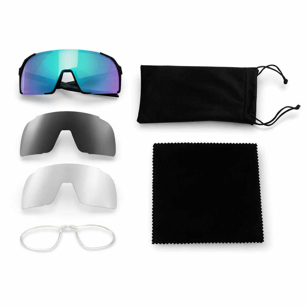 AeroVision Sport Sunglasses offer superior protection and comfort for cyclists due to their polycarbonate lenses and ventilated frame. They offer 100% UV protection, ensuring riders' eyes are shielded from the sun. Plus, the lightweight design and adjustable nose pad guarantee a secure and comfortable fit.